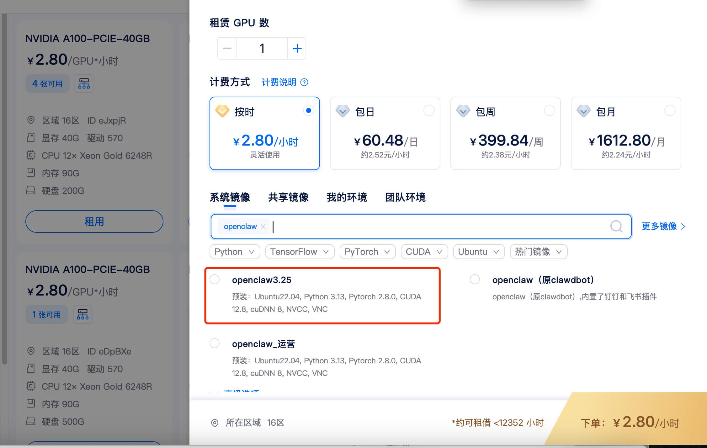openclaw镜像租用示例